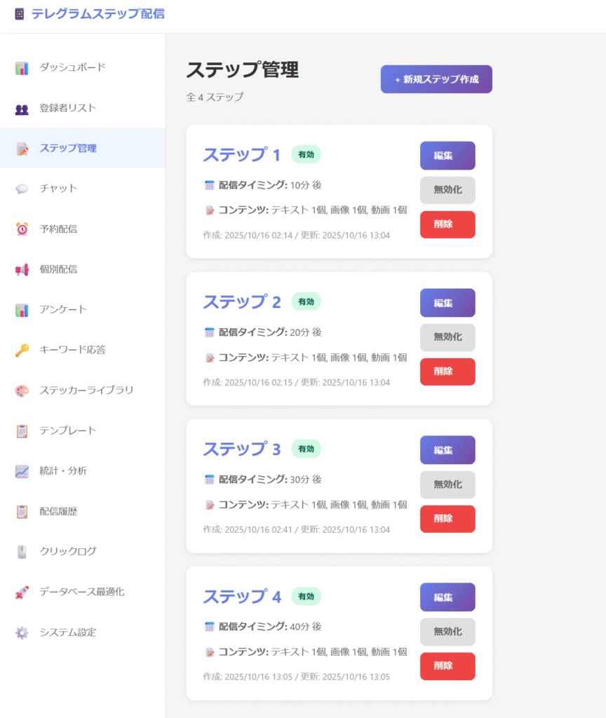 テレグラムステップ配信機能