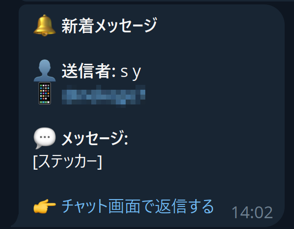 ご自身のテレグラムアカウントにメッセージが届いた場合には通知が届く設定も可能です。