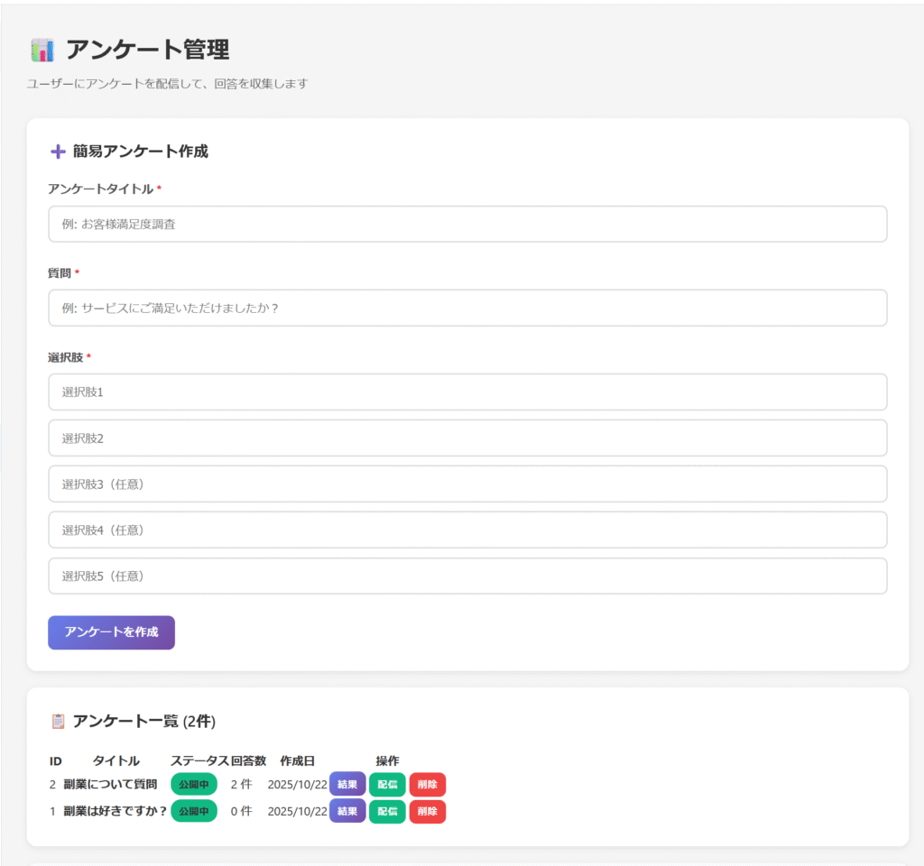- アンケート機能