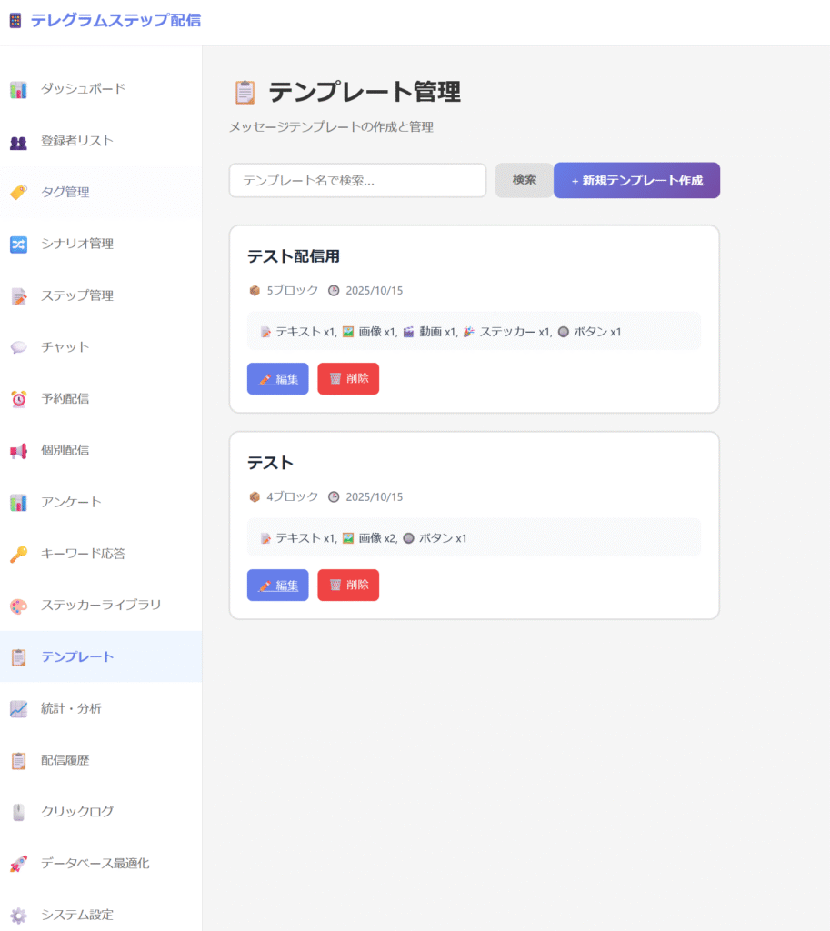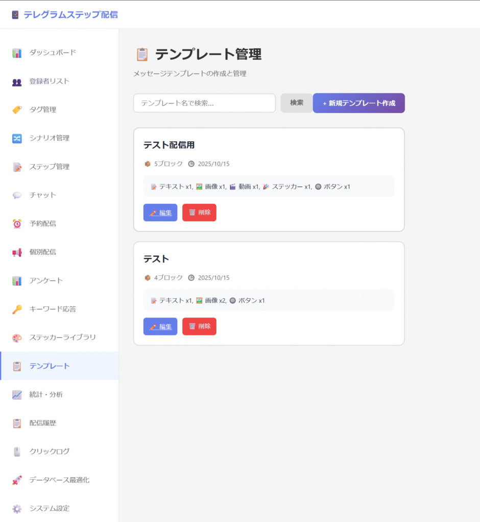 - テンプレート保存機能